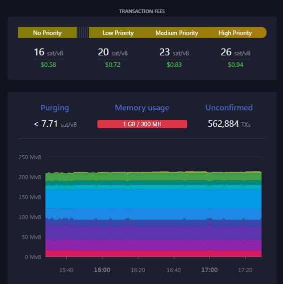 The delay in mining blocks made the network congested. According to Mempool data, the number of unconfirmed transactions in the queue shot up to 560,810 at the time of writing, promoting users to bid up fees to jump the queue.