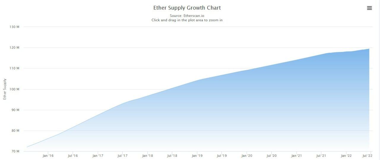 During the 2014 Ethereum ICO, the total supply of Ether was about 72 million; fast-forward eight years later to June 2022 and Ethereum’s total supply of ETH is a little over 121 million.