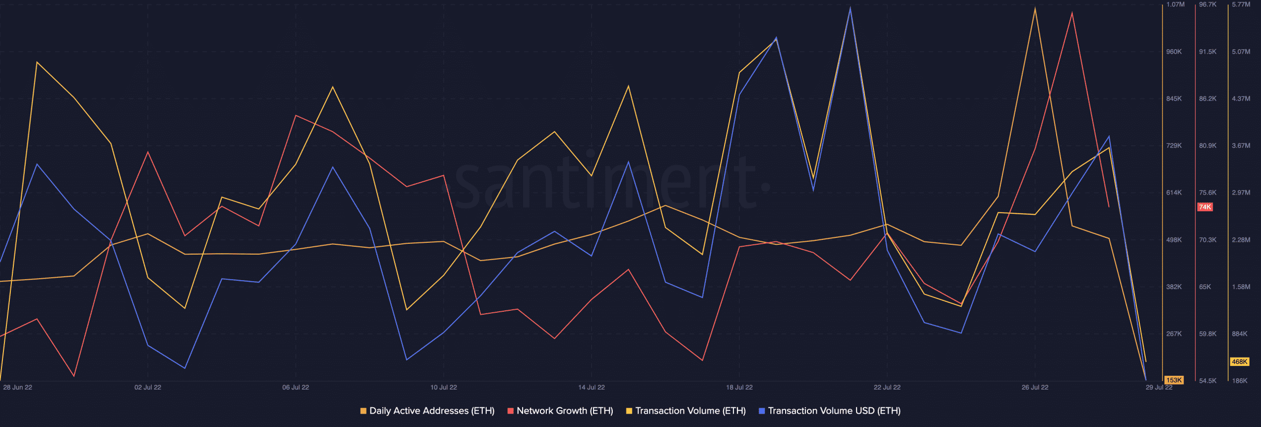 Following the price rally of 28 July, ETH’s market capitalization reclaimed the $205 billion spot. At press time, the alt’s market capitalization stood at $211.34 billion. At $133.35 billion just a month ago, ETH registered a 58% growth in its market capitalization in the last 30 days.