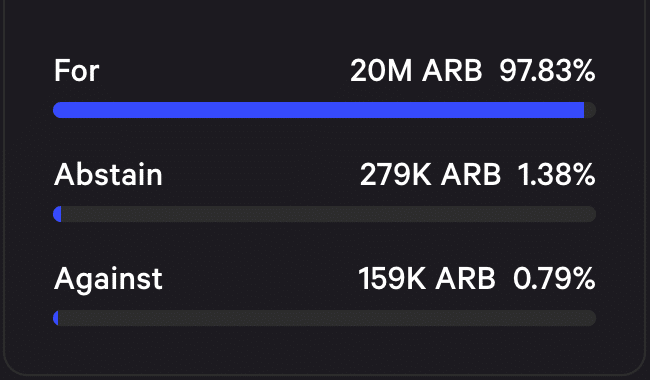 At press time, 97.83% of the votes were in favor of this proposal.