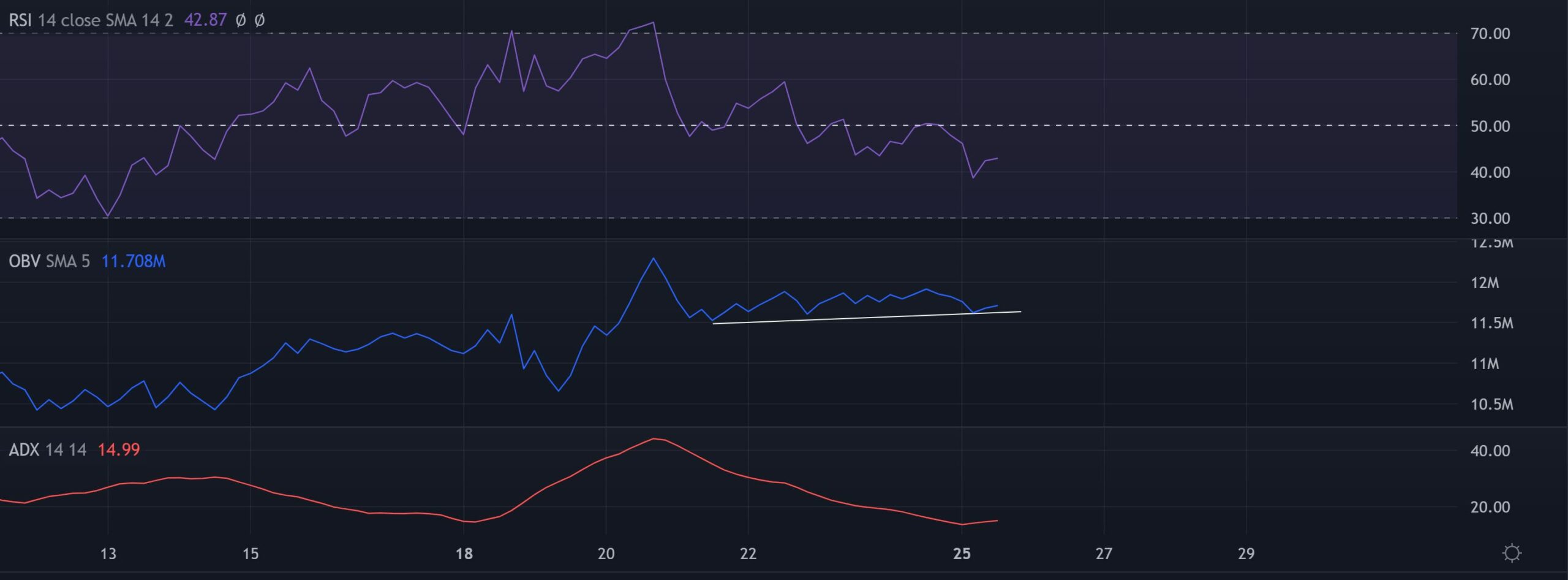 The RSI has been moving south for over five days now. An inability to break the bonds of the midline would aid the sellers in inflicting drawdowns.