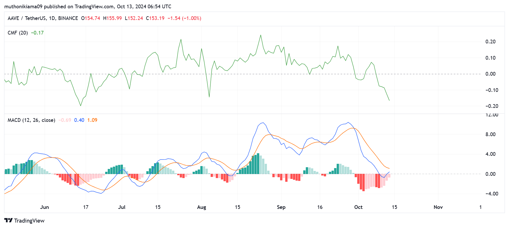 A look at the Chaikin Money Flow (CMF) shows that capital is still flowing out of AAVE. At press time, the CMF had a score of -0.17.