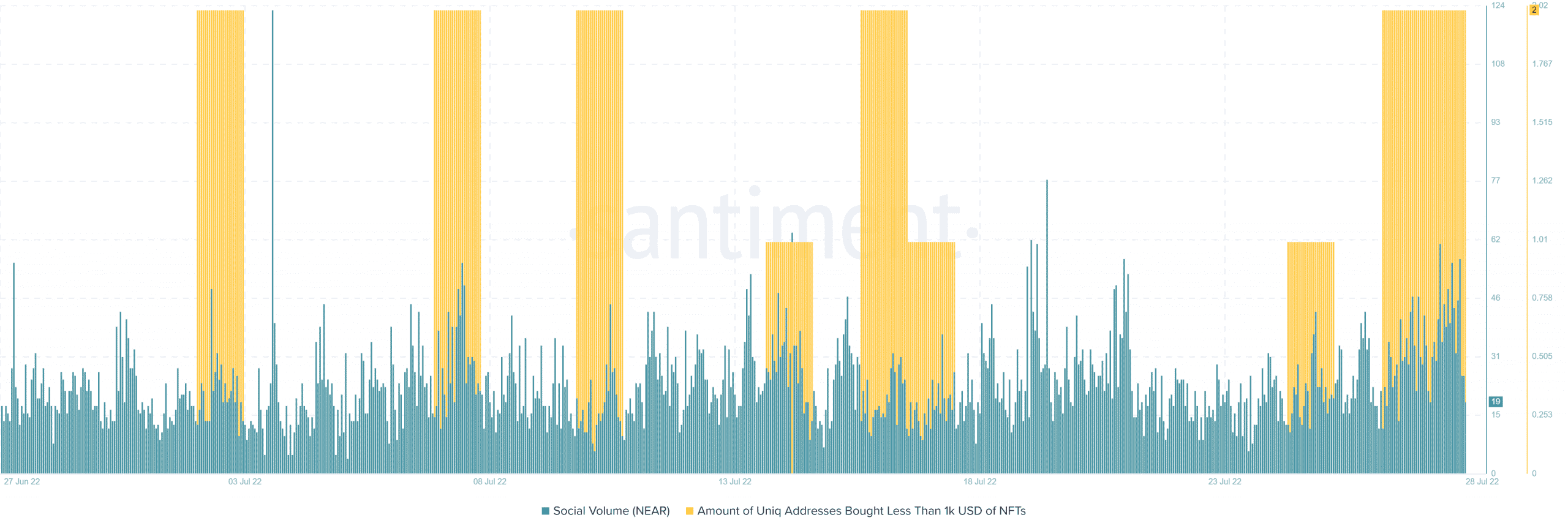 Despite the lower NFT volumes, NEAR’s short-term price action is still promising. Its social volume registered a significant uptick in the last three days. This may explain its slight bullish uptick and may perhaps lead to improved price performance in the short term.