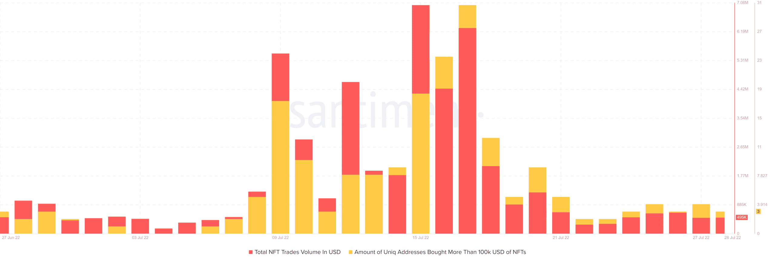 This outcome also affected NFT trade volumes on the network. NFT trades increased significantly in the second week of July, and peaked at around mid-month, before tapering out.