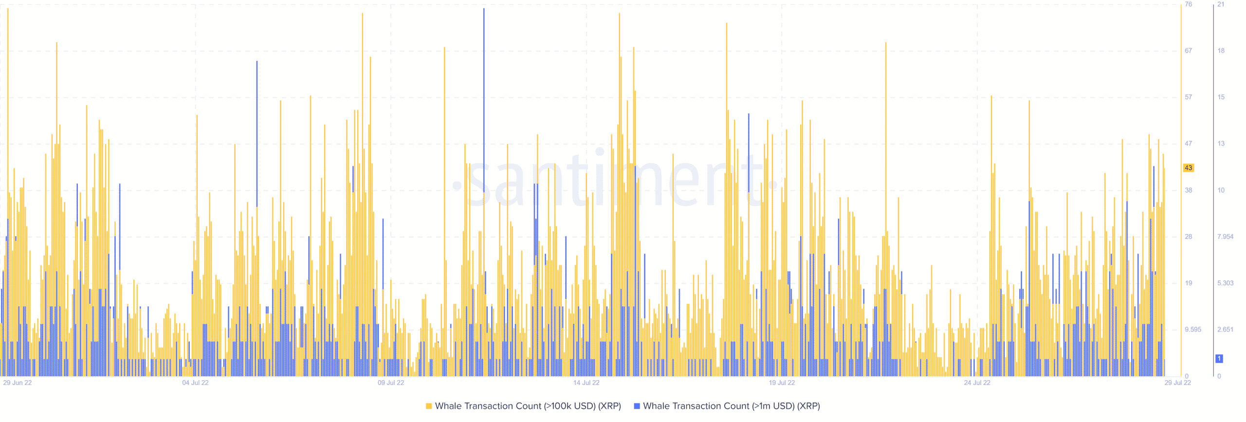 XRP also maintained a healthy number of transactions worth between $100,000 and $1 million. However, this category did not provide any noteworthy spike compared to the previous week.