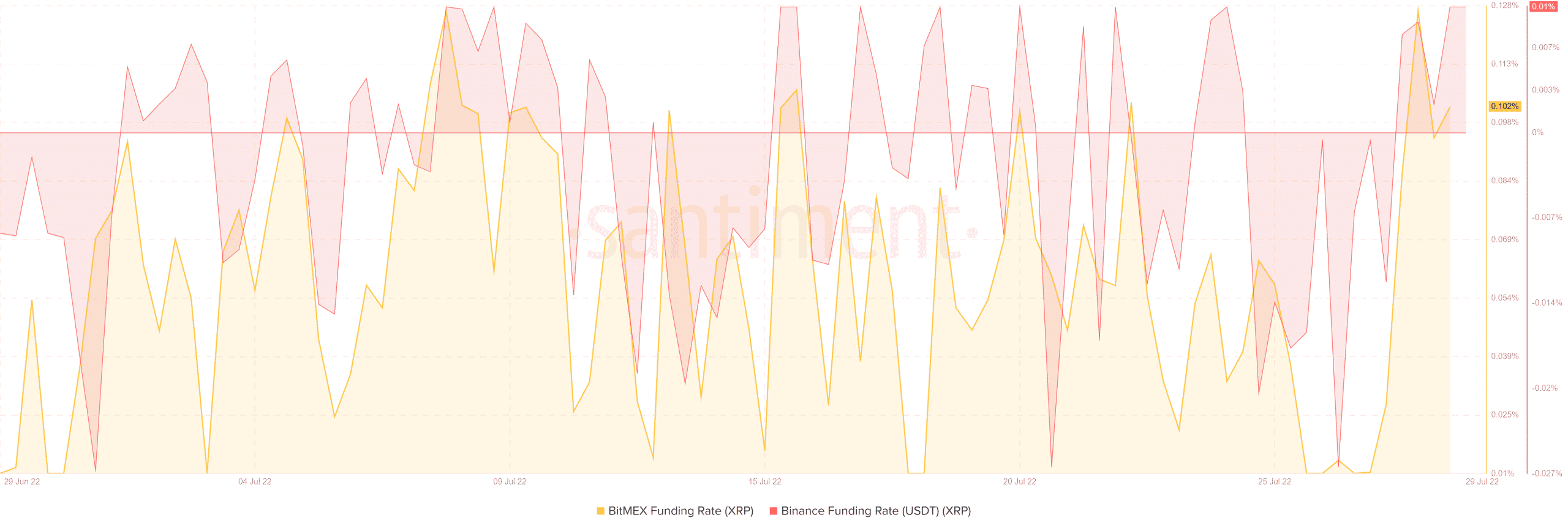Despite its relatively limited price range, XRP’s on-chain metrics highlight healthy activity, especially between 28 July and 29 July. For example, its Bitmex and Binance funding rates improved significantly, implying that investor sentiment is improving.